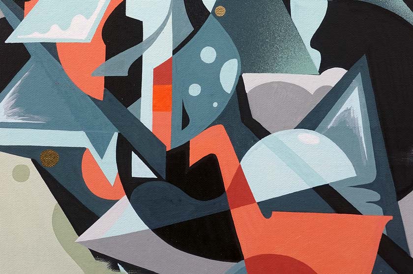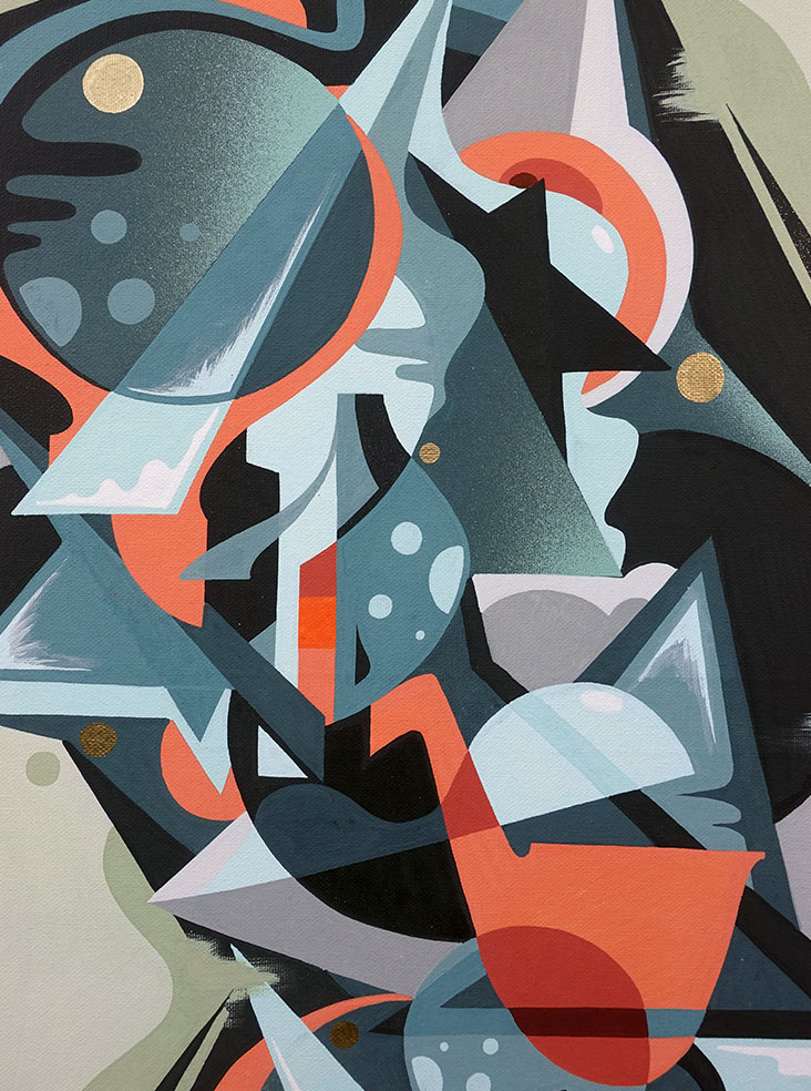 Each work is a unique composition where graffiti roots meet the influences of my graphic design background. The abstract formal elements create an interplay of movement, depth and balance.